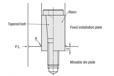 Chốt giật khuôn điều chỉnh ma sát giữa khuôn và vỏ nhựa bằng bulong có góc nghiêng. Nó cho phép điều chỉnh ma sát giữa tấm đế và ống bọc nhựa bằng cách siết chặt / nới lỏng chốt côn.